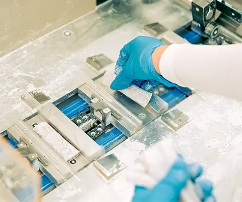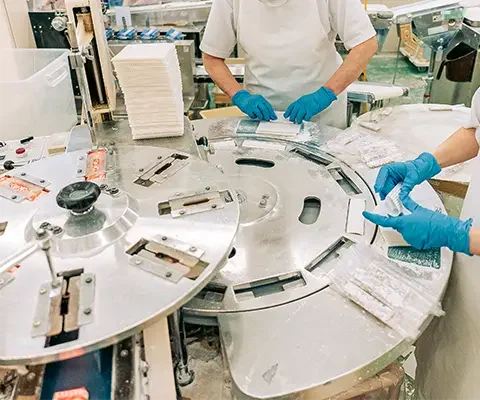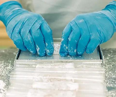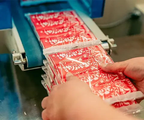 - 手作業でラミネート加工をした紙で包み、機械で包装紙で包みます