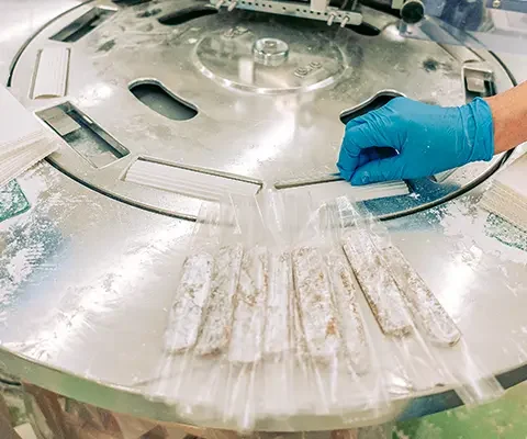 - 1つずつの重さや形を正確に判別して、規格外のものをはじきます。
