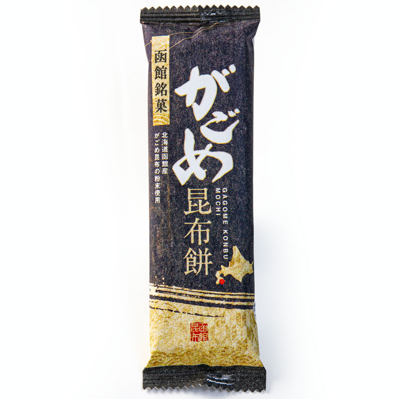 函館産がごめ昆布の粉末をを練り込みました。もちもちした食感と昆布の風味豊かな餅菓子です。