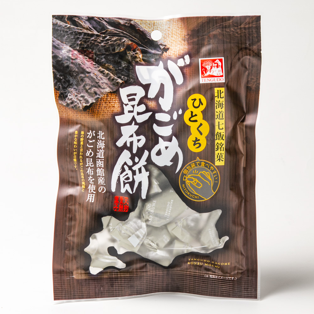 北海道函館産の「がごめ昆布」を使用した「がごめ昆布餅」は、海の野菜と言われる「がごめ昆布」の自然の風味と豊かな味わいが自慢の北海道の美味しさです。