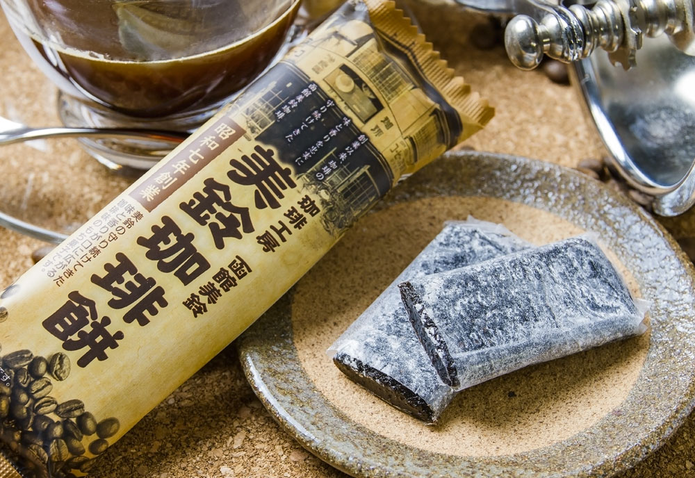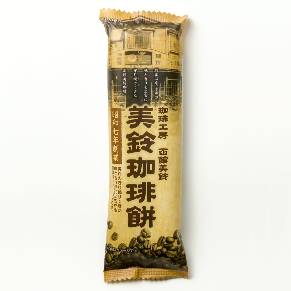 昭和7年創業、函館美鈴の守り続けてきた珈琲の味と香りが口に広がる珈琲味の餅菓子です。