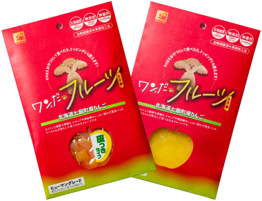 地元七飯町産の新鮮なフルーツを加工した、ペットも人も安心して食べられる無添加のペット用おやつです。